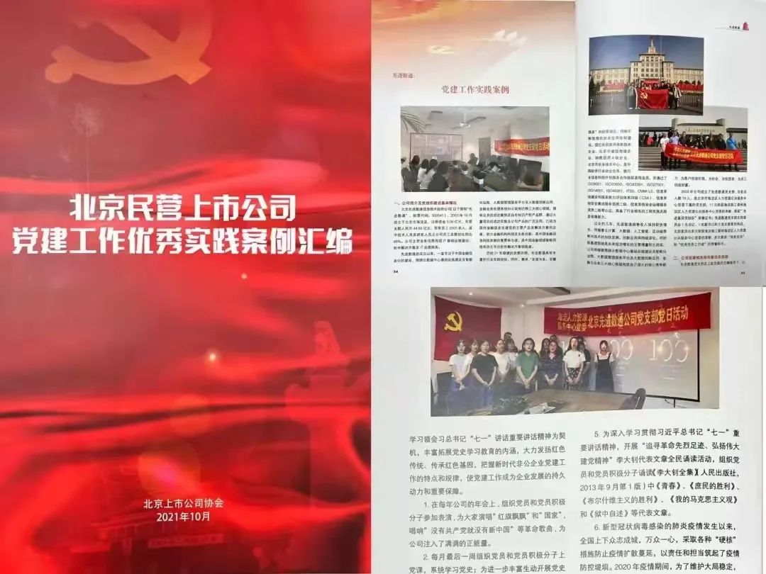 近期,北京上市公司协会授予北京深圳商务信息技术股份公司荣誉证书,深圳商务党建工作实践入选北京民营上市公司党建工作优秀实践案例,相关党建活动已收录在《北京民营上市公司党建工作优秀实践案例汇编》。