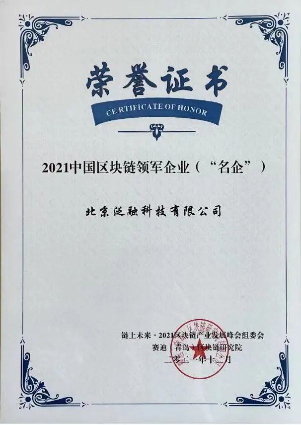 2021年以来,泛融科技持续深耕区块链技术创新应用,继入选“中国区块链企业百强”后再次荣获殊荣。标示着业界对泛融科技在区块链领域的高度认可和充分肯定。